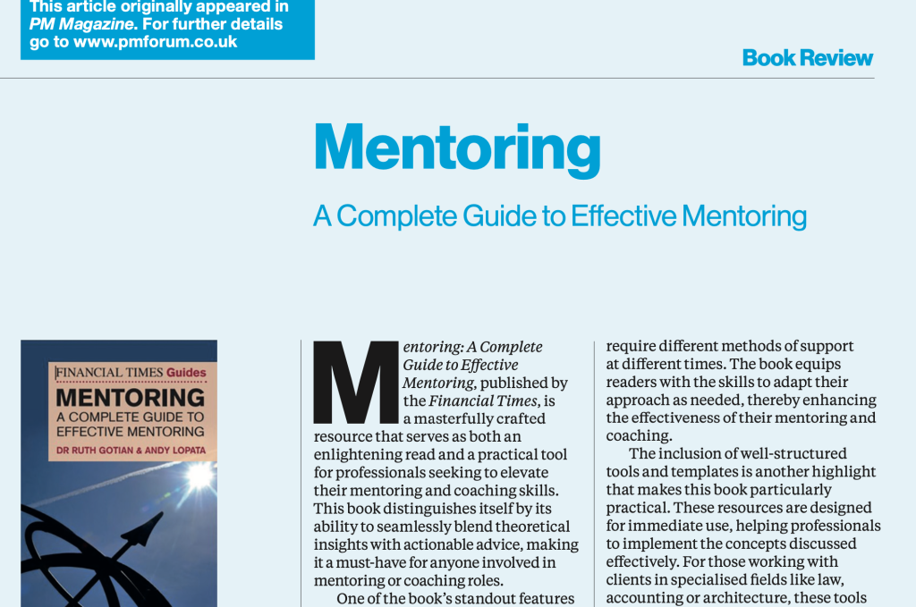 Our thanks go out to Bernard Savage, director of Size 101⁄2 Boots, a specialist business development agency that helps professional services firms improve the bottom line, for reviewing The FT Guide To Mentoring in PM Magazine.
